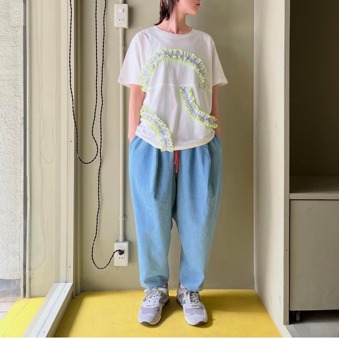 "12オンスのデニムを使ったSNEEUW定番のコクーンシルエットのパンツ。