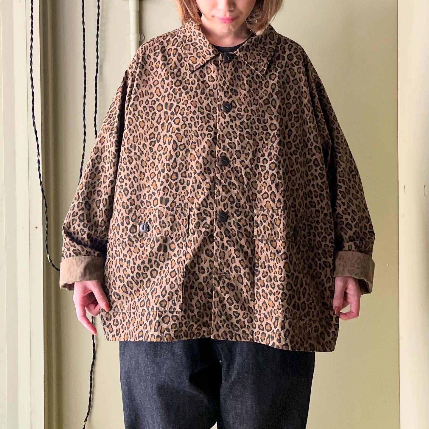 ヒョウ柄のジャケットは、お上品に羽織りたい。