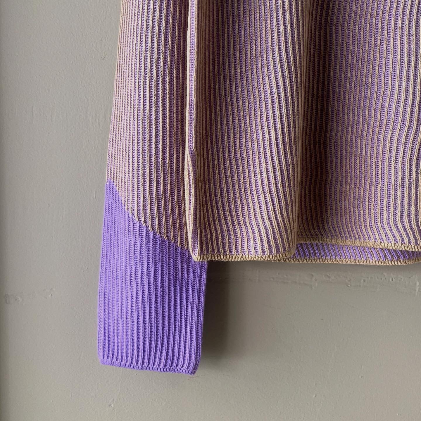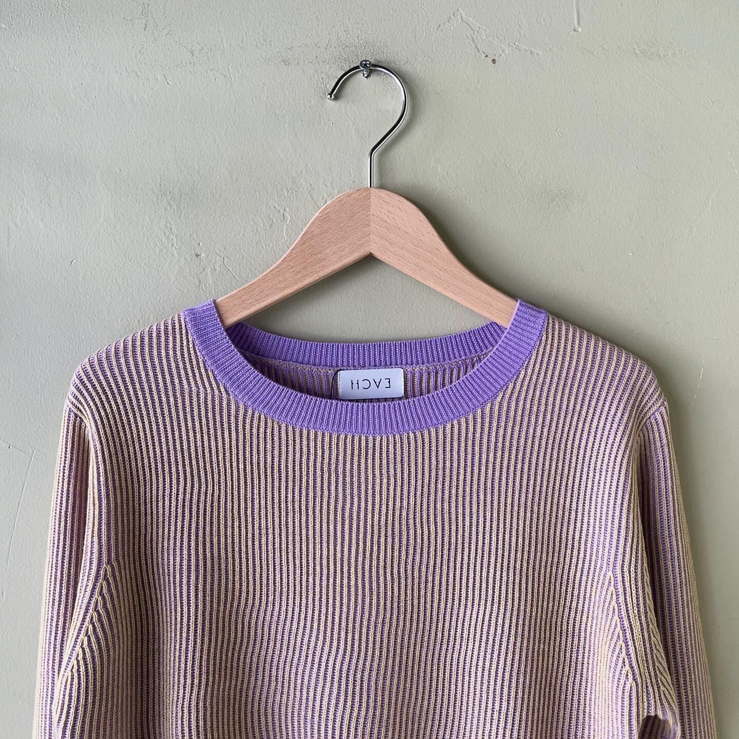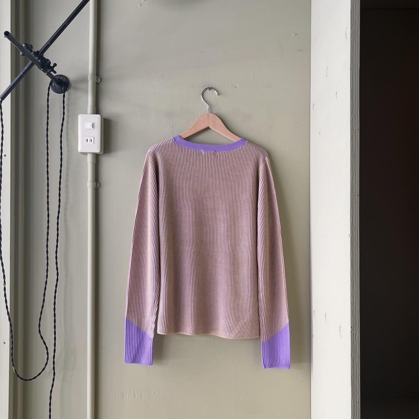 HCAE"CONTRAST TRIM RIB KNIT TOP"PURPLE×BEIGE