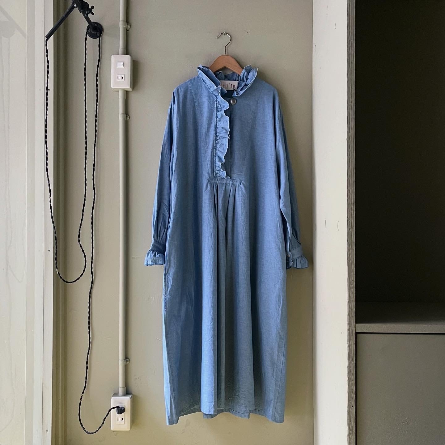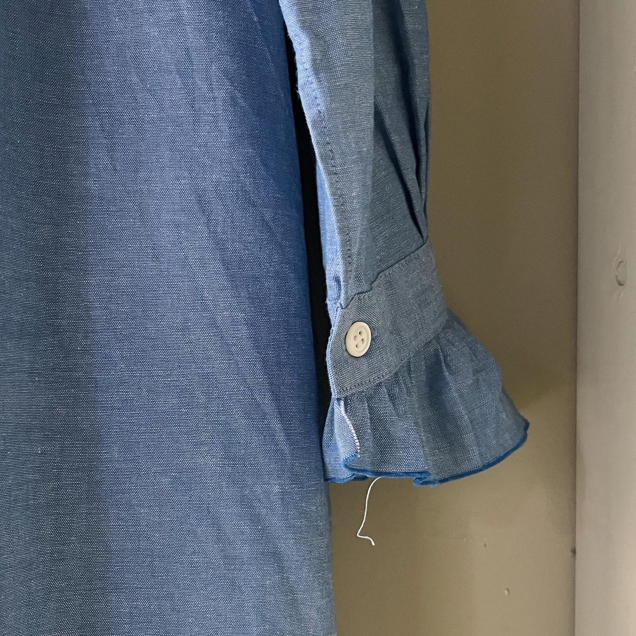 カットオフされたフリルとインパクトあるコンチョボタンが特徴。
