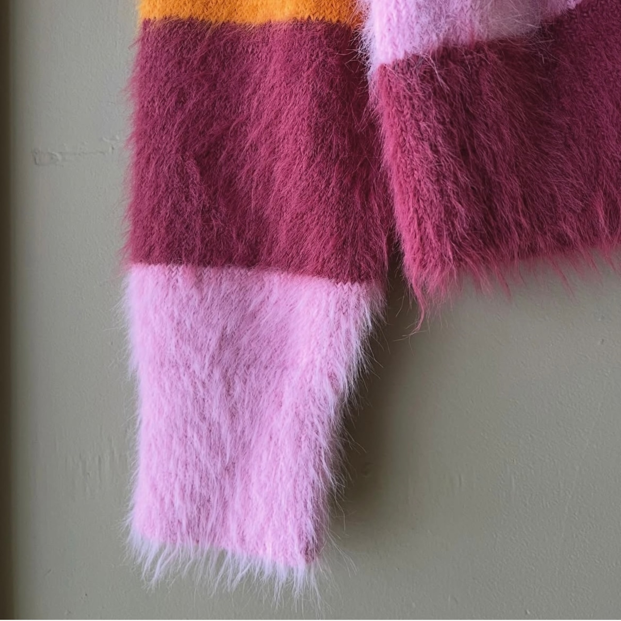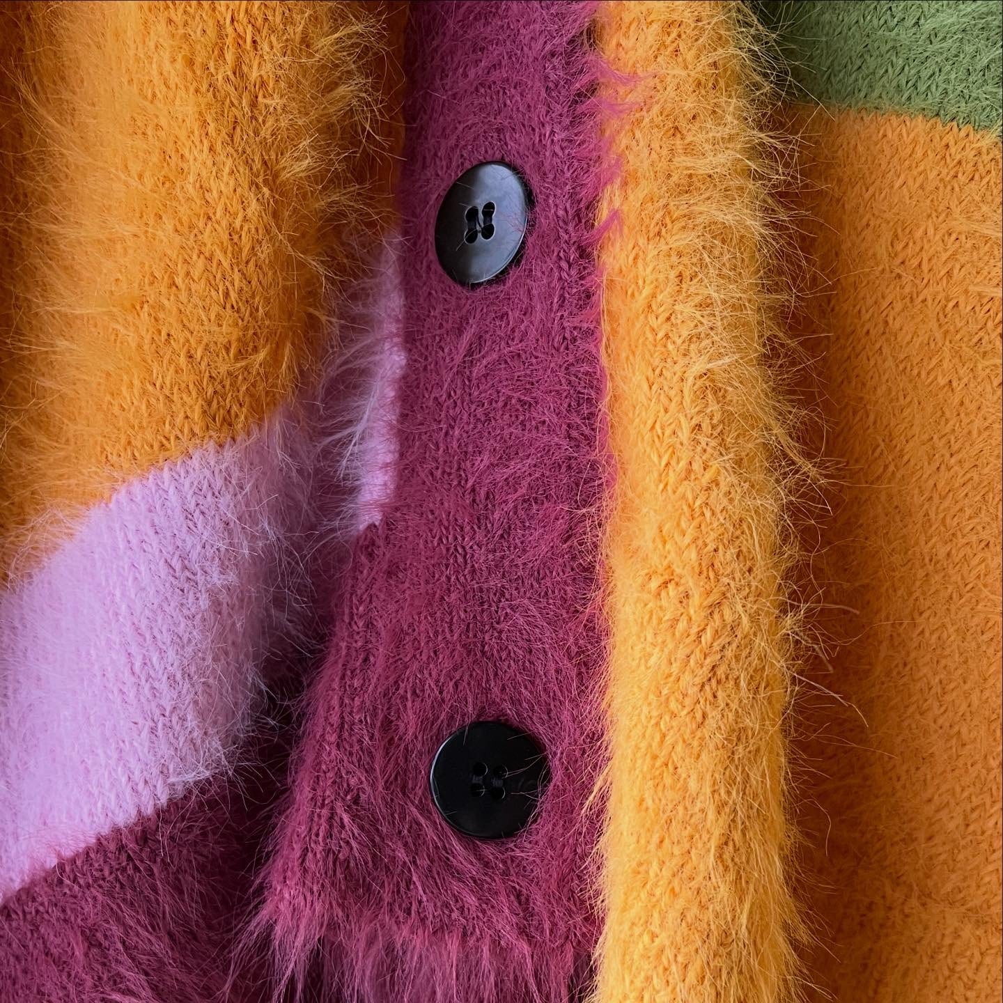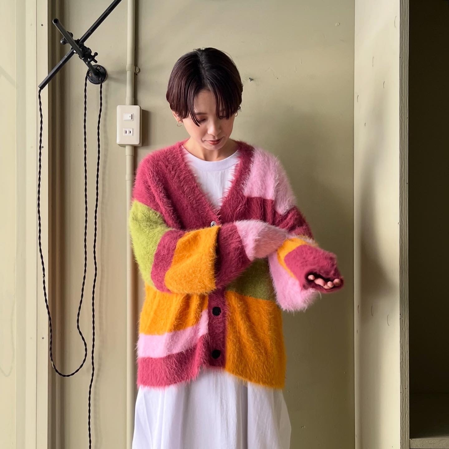 HCAE"MULTI COLOR SHAGGY KNIT CARDIGAN"red