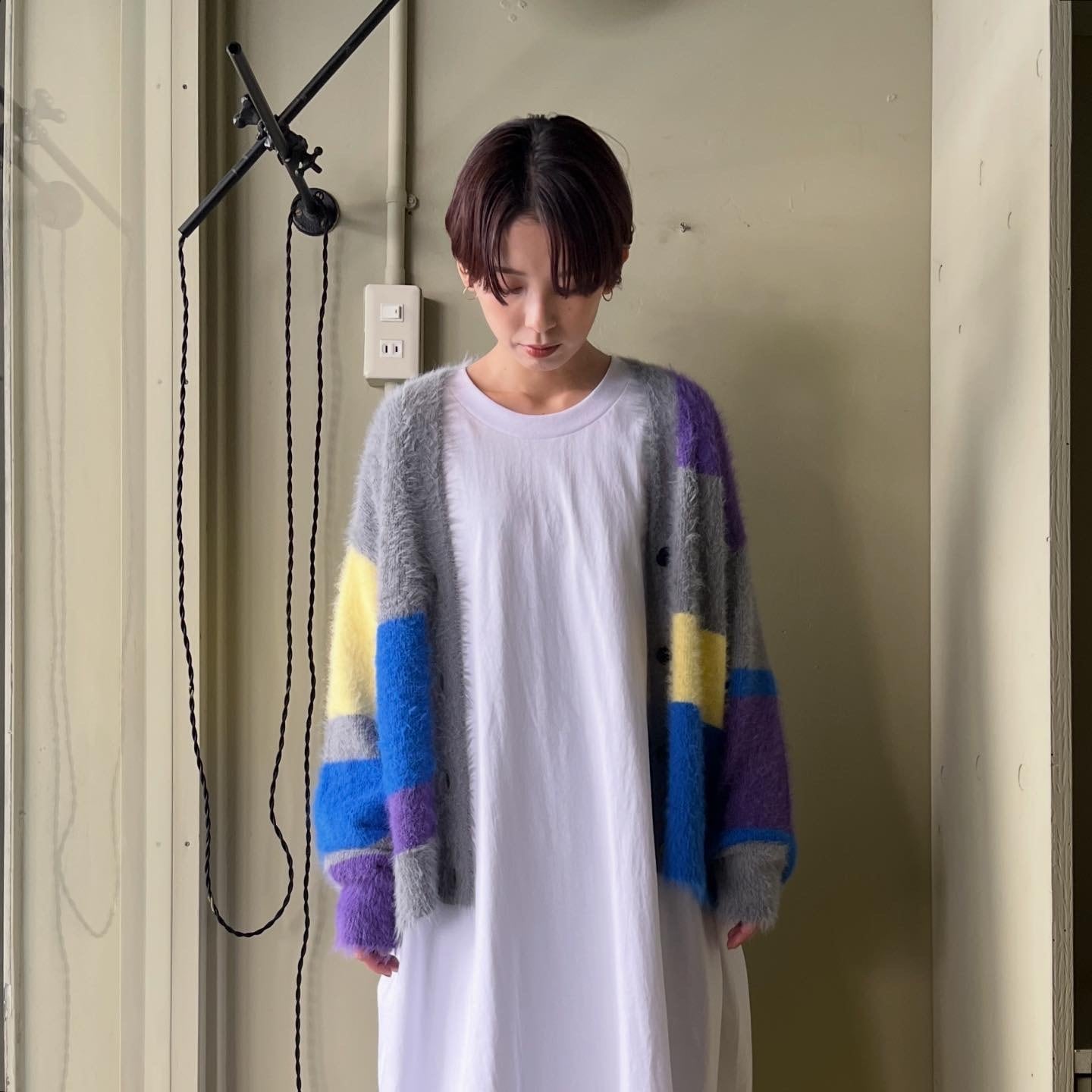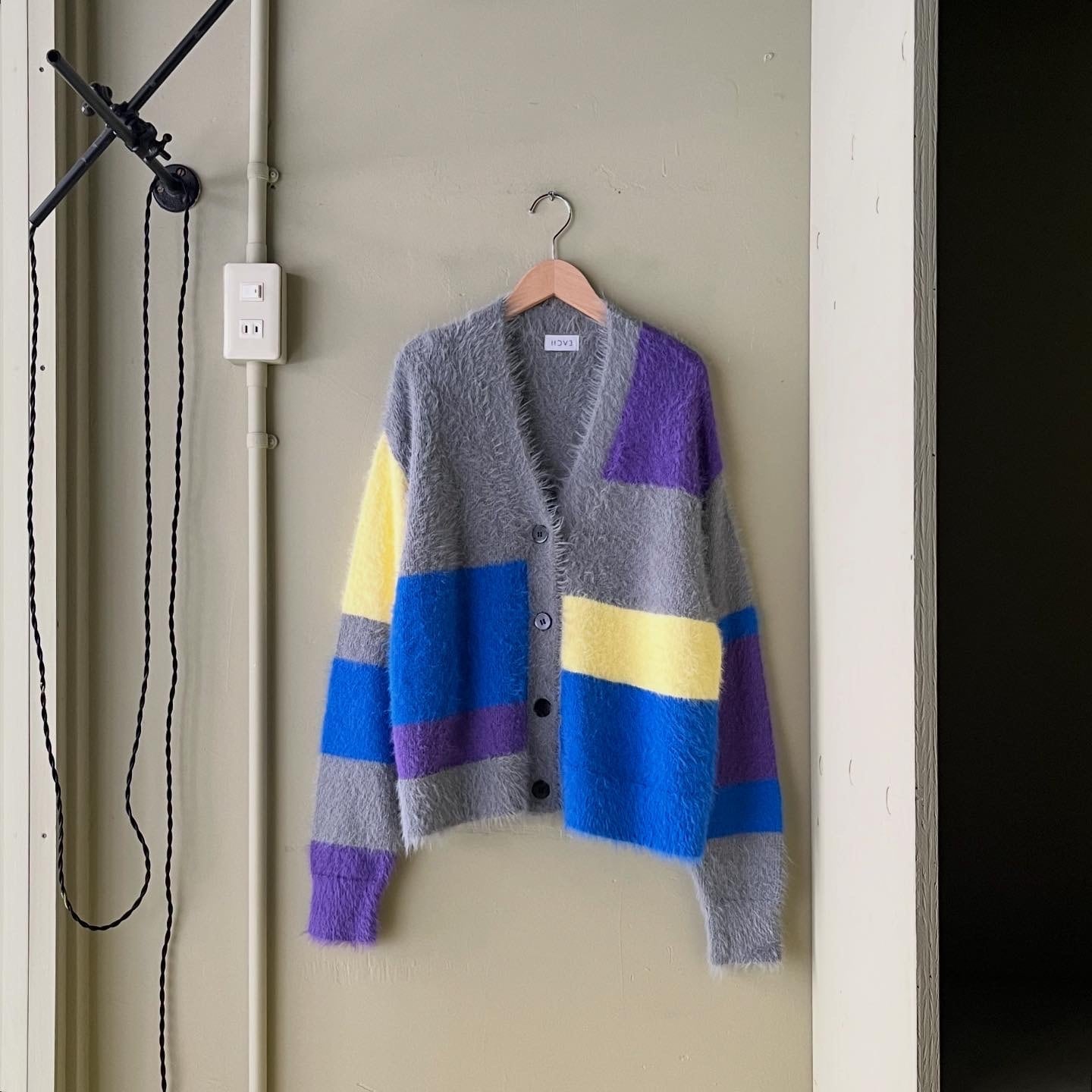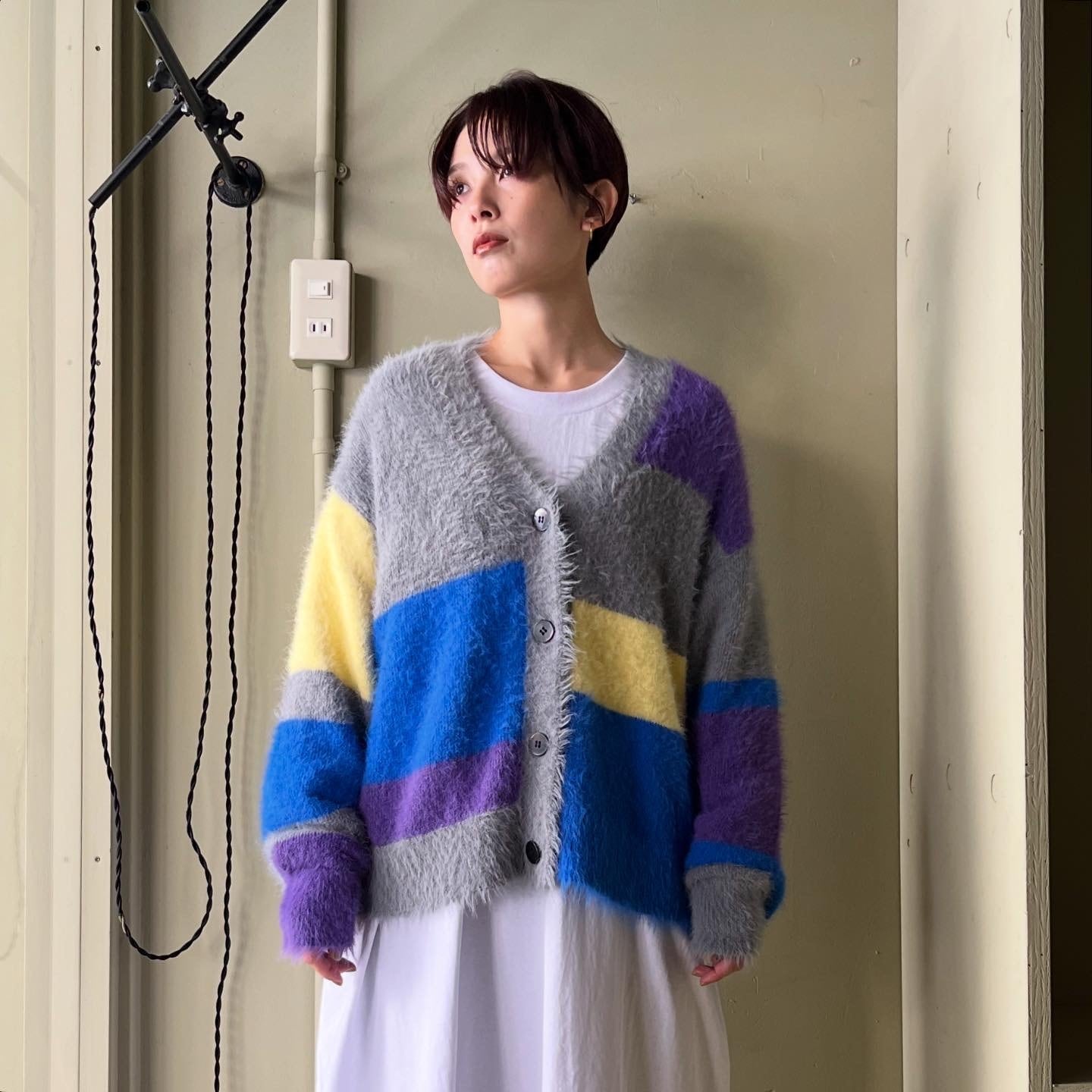 HCAE"MULTI COLOR SHAGGY KNIT CARDIGAN"gray