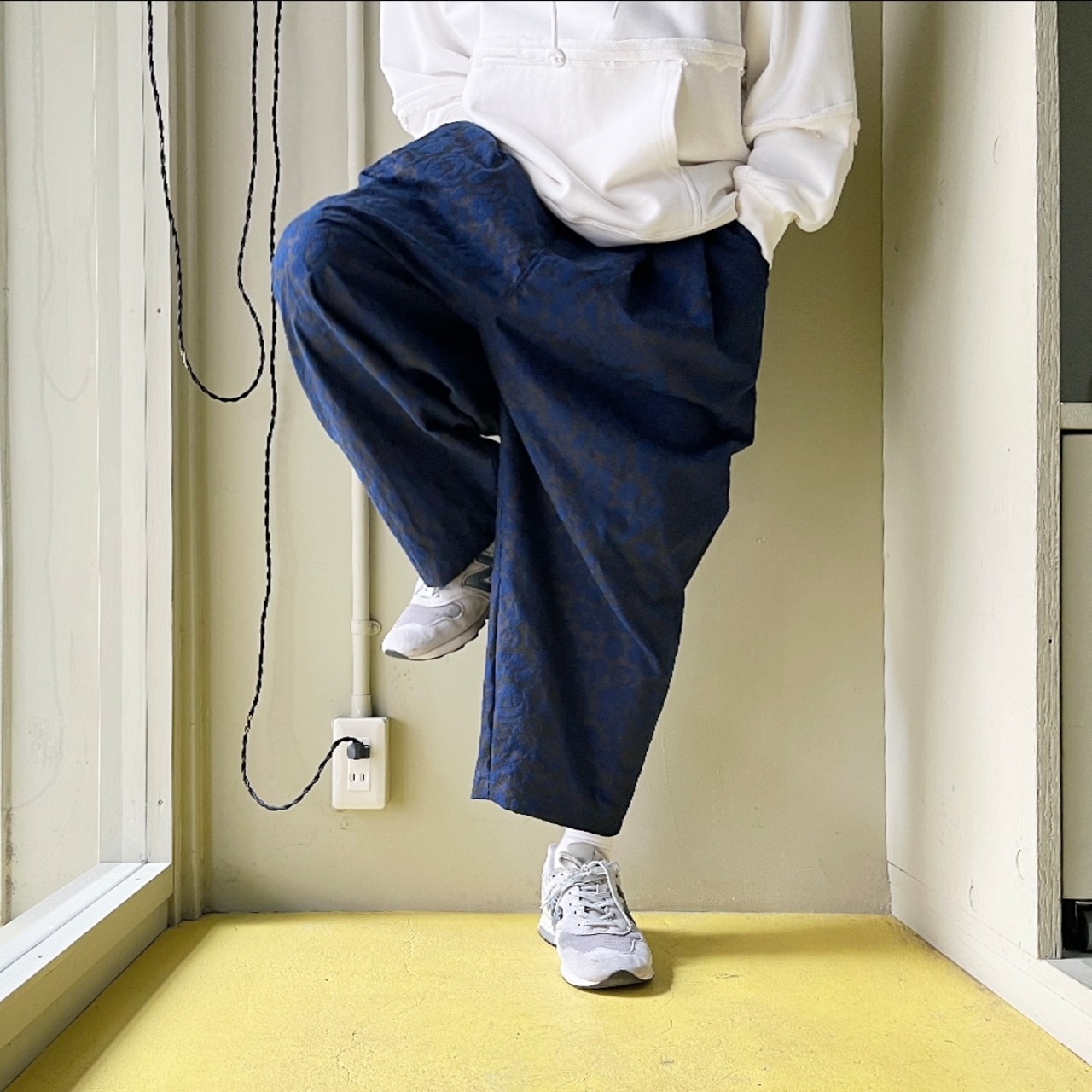 nancoi"flower flocky print wide tuck pants"blue